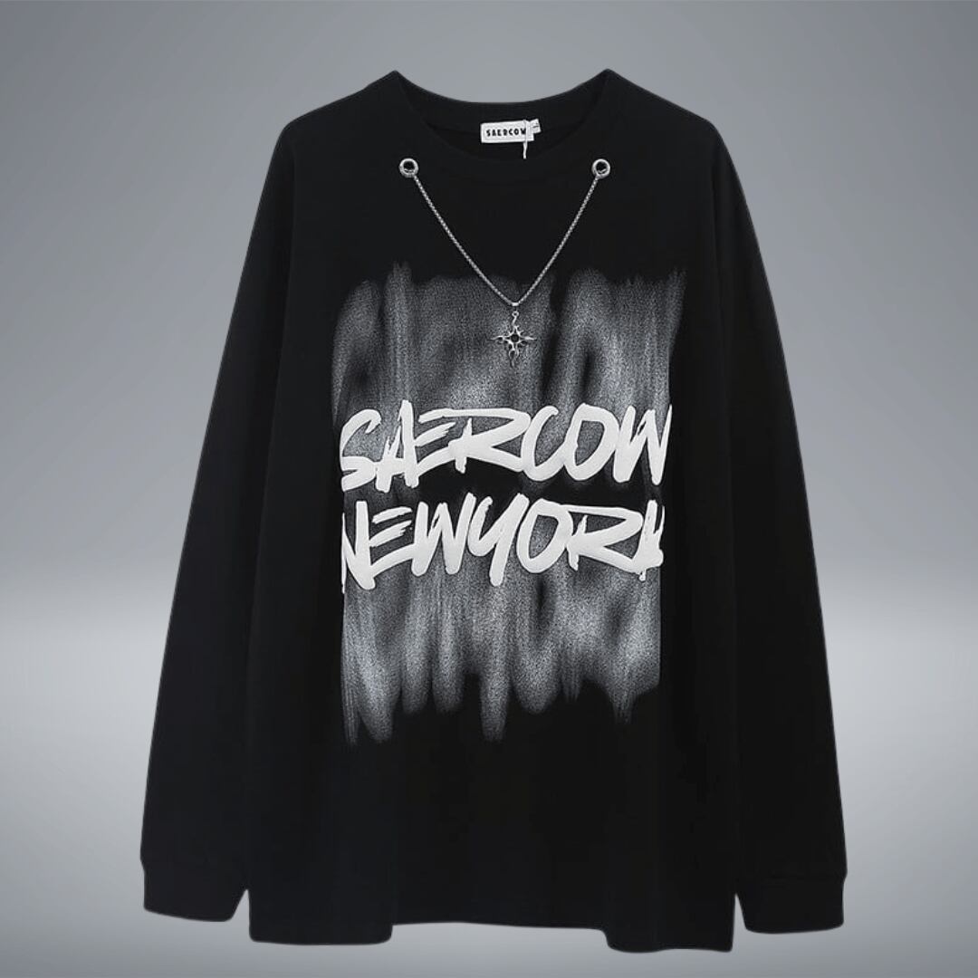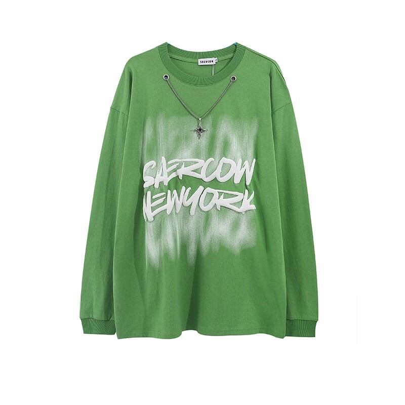 オシャレなチャームが付いたチェーン付長袖ロングTシャツ