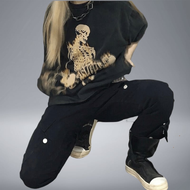 黒のTシャツにドクロのイラストが描いてあり、オシャレでカッコイイです。