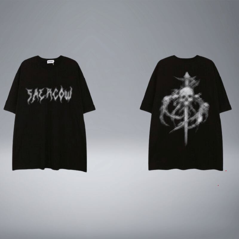 ドクロのイラストがプリントされている、シンプルなビックシルエットTシャツです。