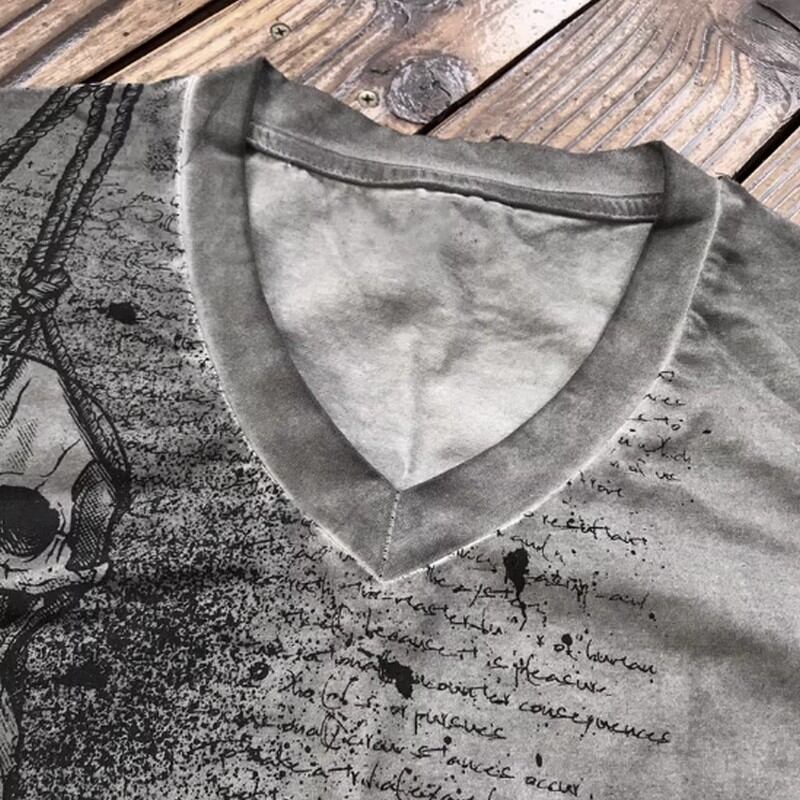 スカル柄ウォッシュVネック 半袖 Tシャツ 20369