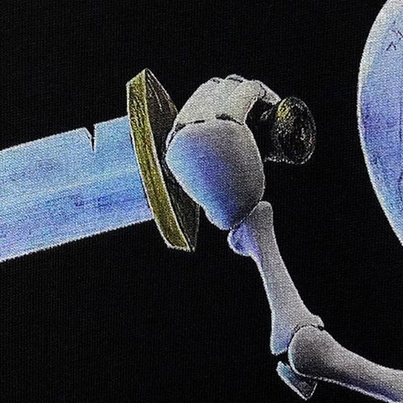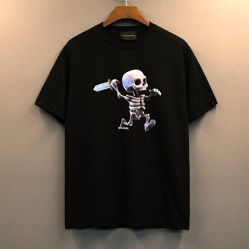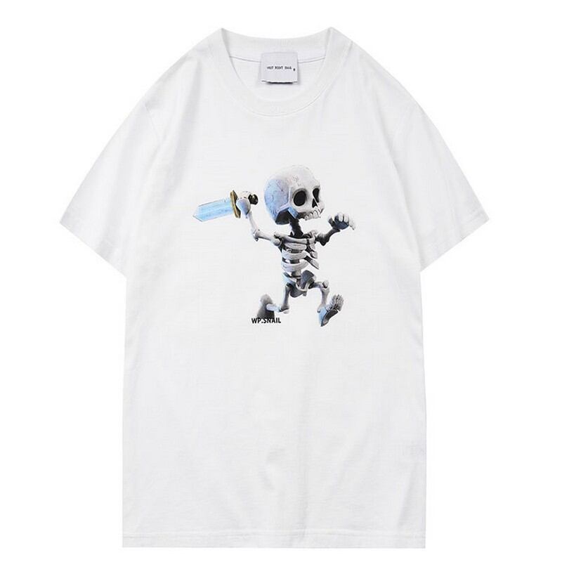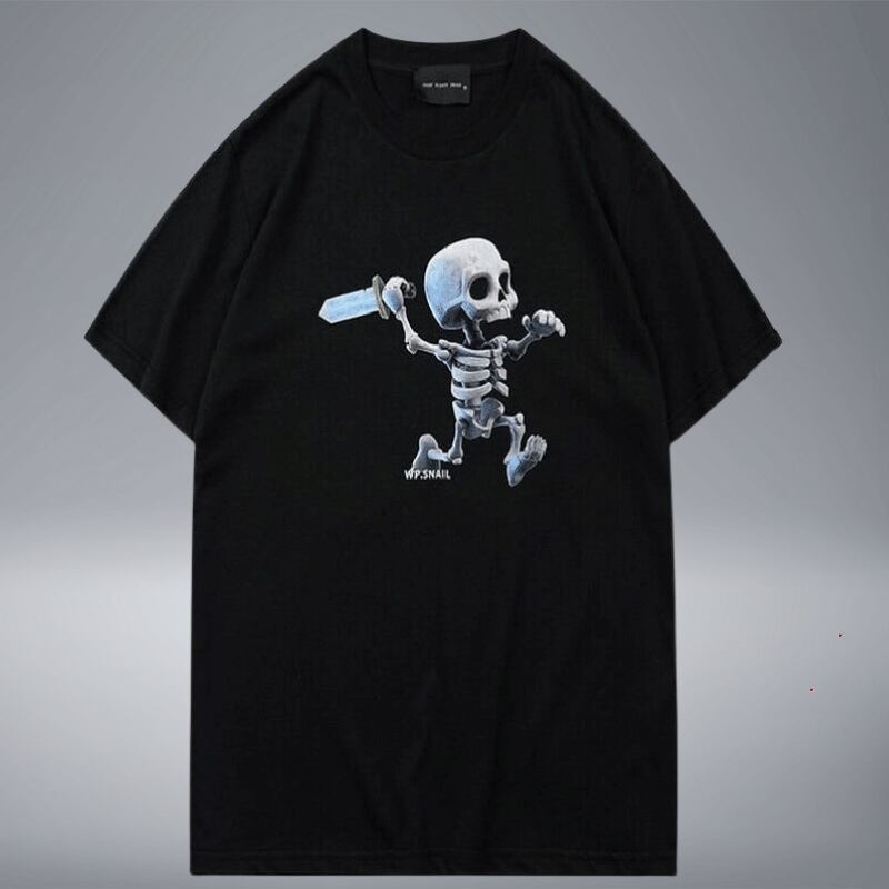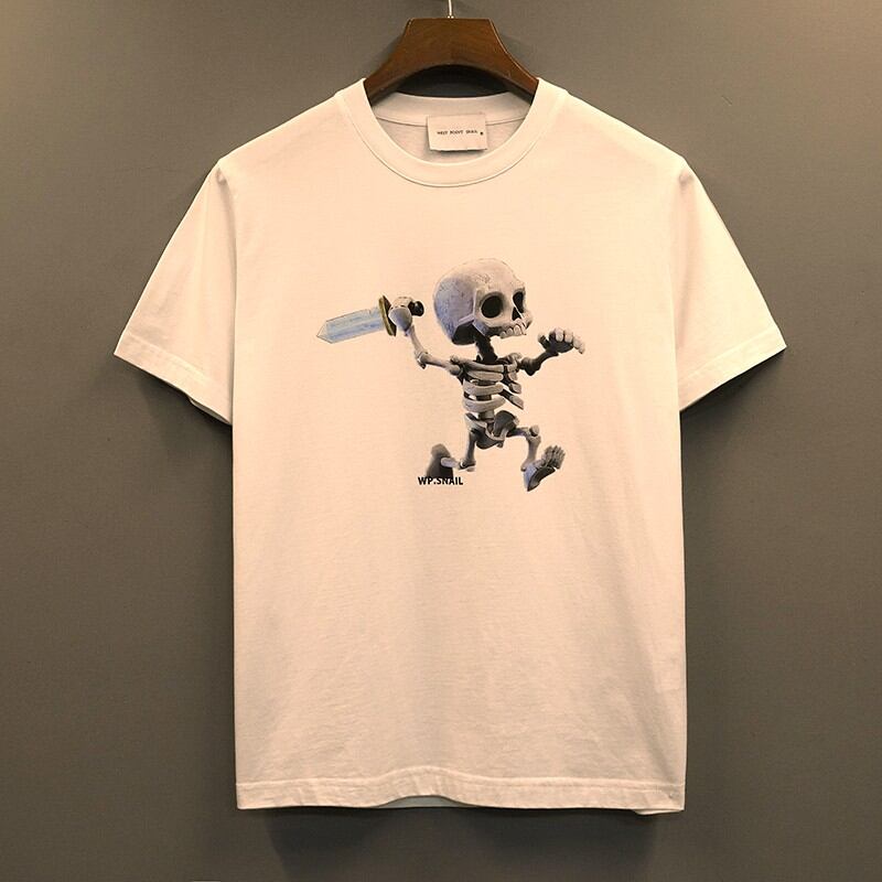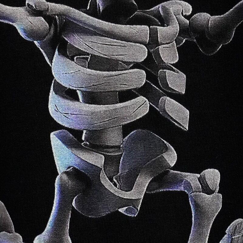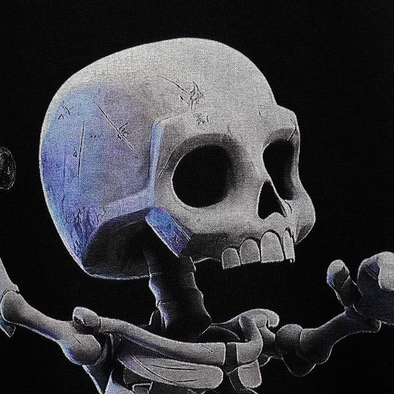 可愛らしいスカルのイラストがプリントされている、Tシャツにりなります。