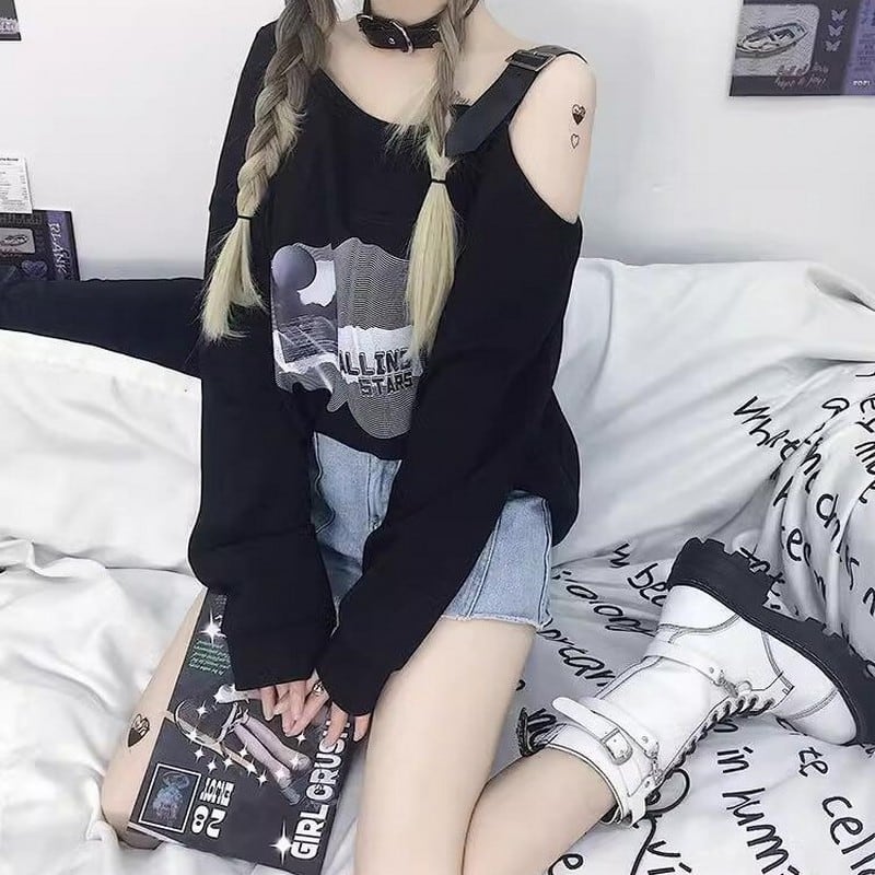 オフショルダートレーナーベルベットトップス 20577