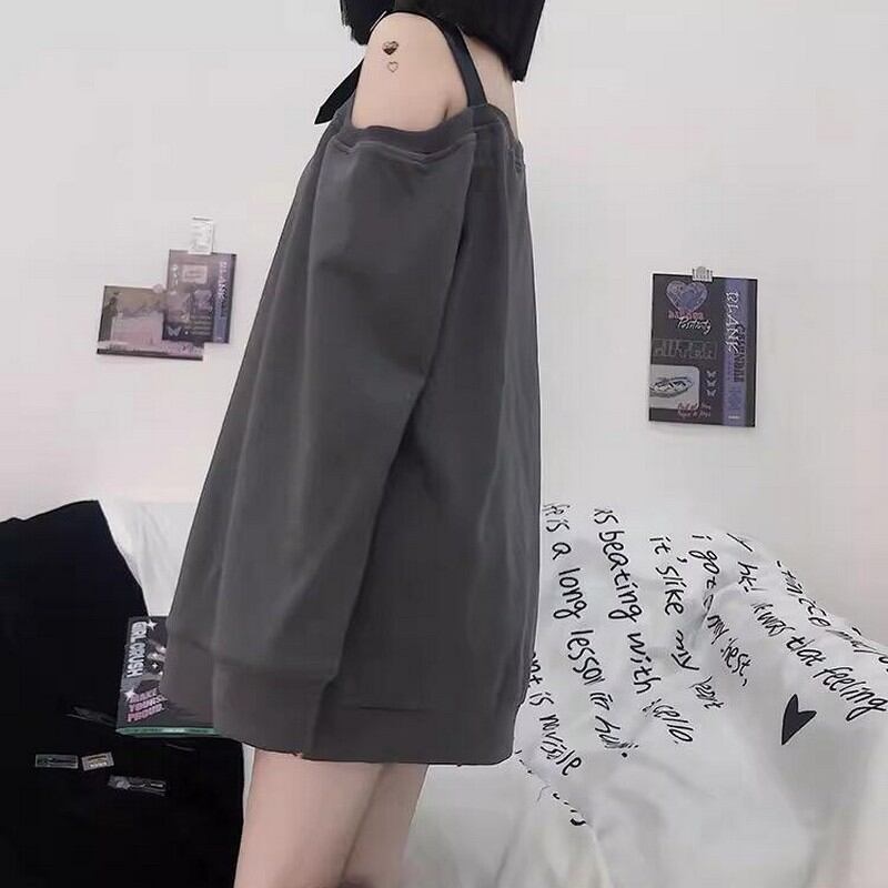 シンプルなデザインだけどオシャレで可愛いくなる、オフショルダートレーナーベルベットトップスです。